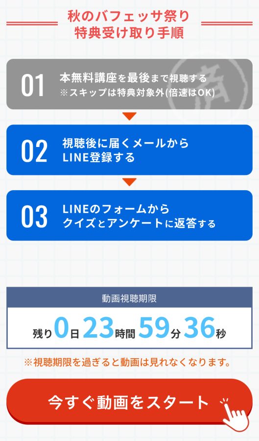 ※必ず最後まで動画を視聴しないと、特典がもらえないよ⚠️