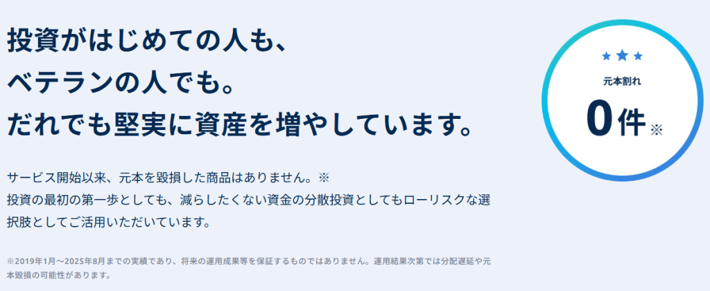 銀行のように預けておくだけで投資ができて、期間が終了したら自動で戻ってくる投資だよ!