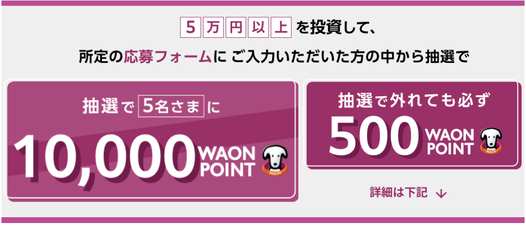 口座開設から3ヶ月以内に累計10万円以上投資すると追加で500マイルもらえるよ!