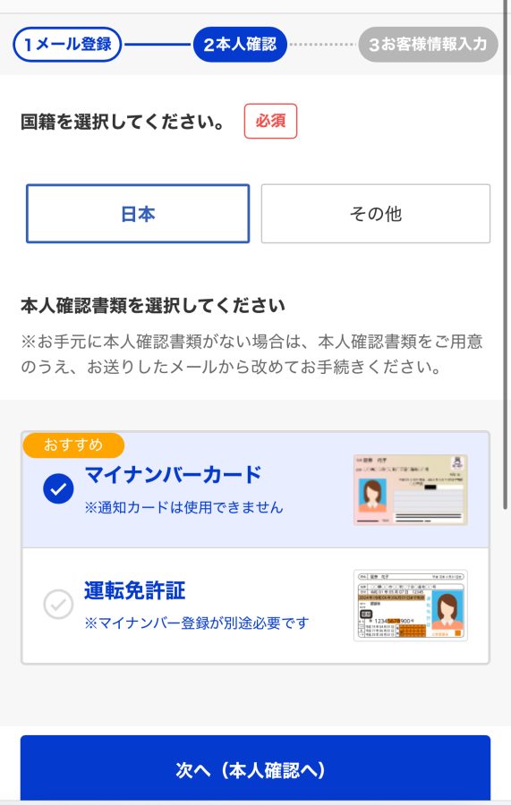 本人確認書類(運転免許証、マイナンバーカードなど)を用意し、7日以内に申し込み手続きをします。
