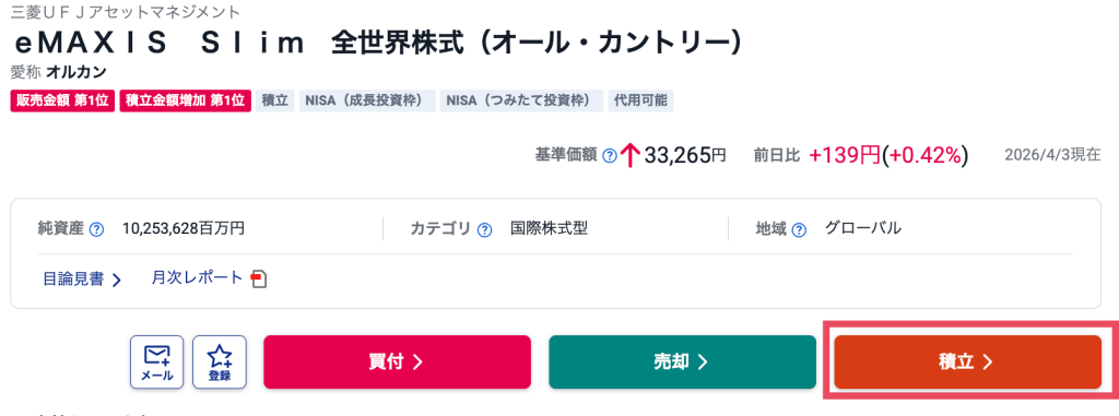 ここからは、今登録したクレジットカードで投資信託を積み立てる「積立設定」について解説していきます。